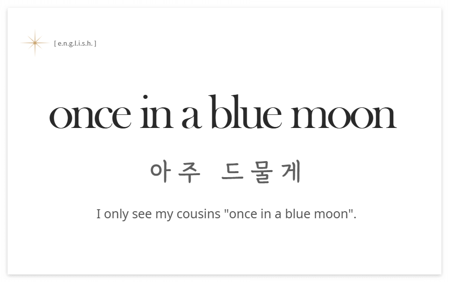 👉 하지만 실제 의미는 훨씬 단순합니다. "once in a blue moon"은 곧 "아주 드물게, 거의 일어나지 않는"을 뜻합니다.